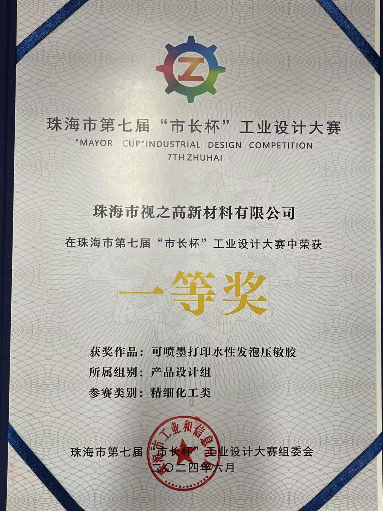 On the afternoon of June 14, the award ceremony of the 7th Zhuhai “Mayor’s Cup” Industrial Design Competition was held at Beijing Normal University Zhuhai Campus. After rigorous evaluation by a panel of experts, a total of 68 winning entries and 37 outstanding student works were honored. Signscal's entry, Inkjet-Printable Water-Based Foamed Pressure-Sensitive Adhesive, received high acclaim from the jury and proudly claimed the only first prize in the fine chemicals category.